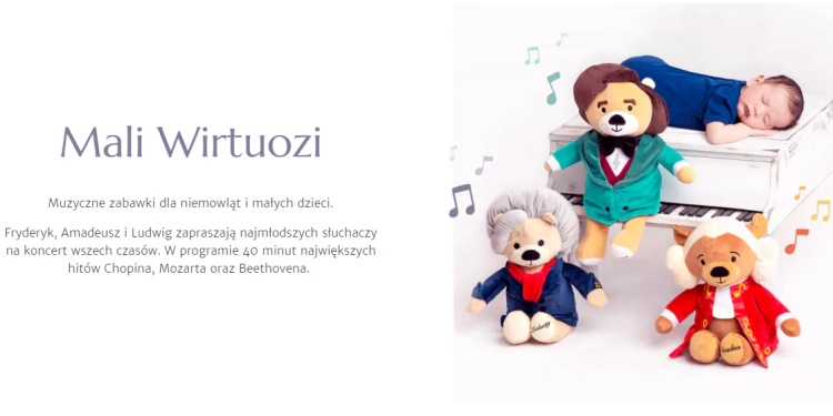 Połączenie zabawy z edukacją Produkty dostępne na stronie Mali Wirtuozi nie tylko bawią, ale także uczą. Dzieci mogą jednocześnie rozwijać swoje umiejętności i dobrze się bawić, co sprawia, że nauka staje się przyjemnością.