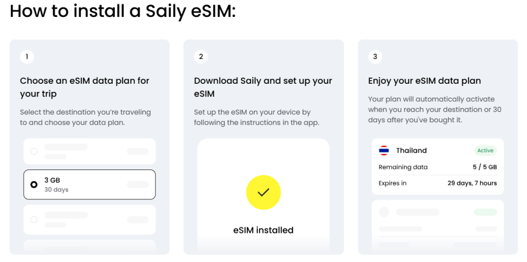 Wchodząc na stronę Saily, użytkownik trafia na przejrzysty i intuicyjny interfejs, który ułatwia dobór odpowiedniego pakietu. Serwis oferuje szeroki wachlarz opcji dostosowanych do różnych potrzeb: